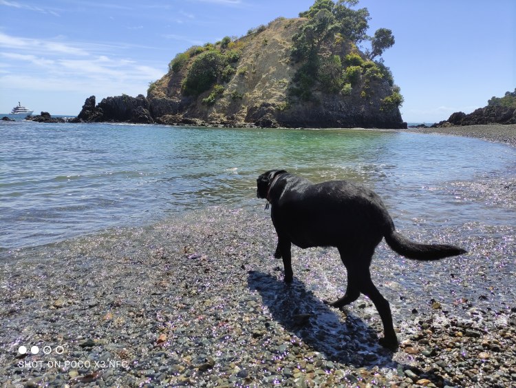 Dogs walked on the trails and beaches of Waiheke Island.